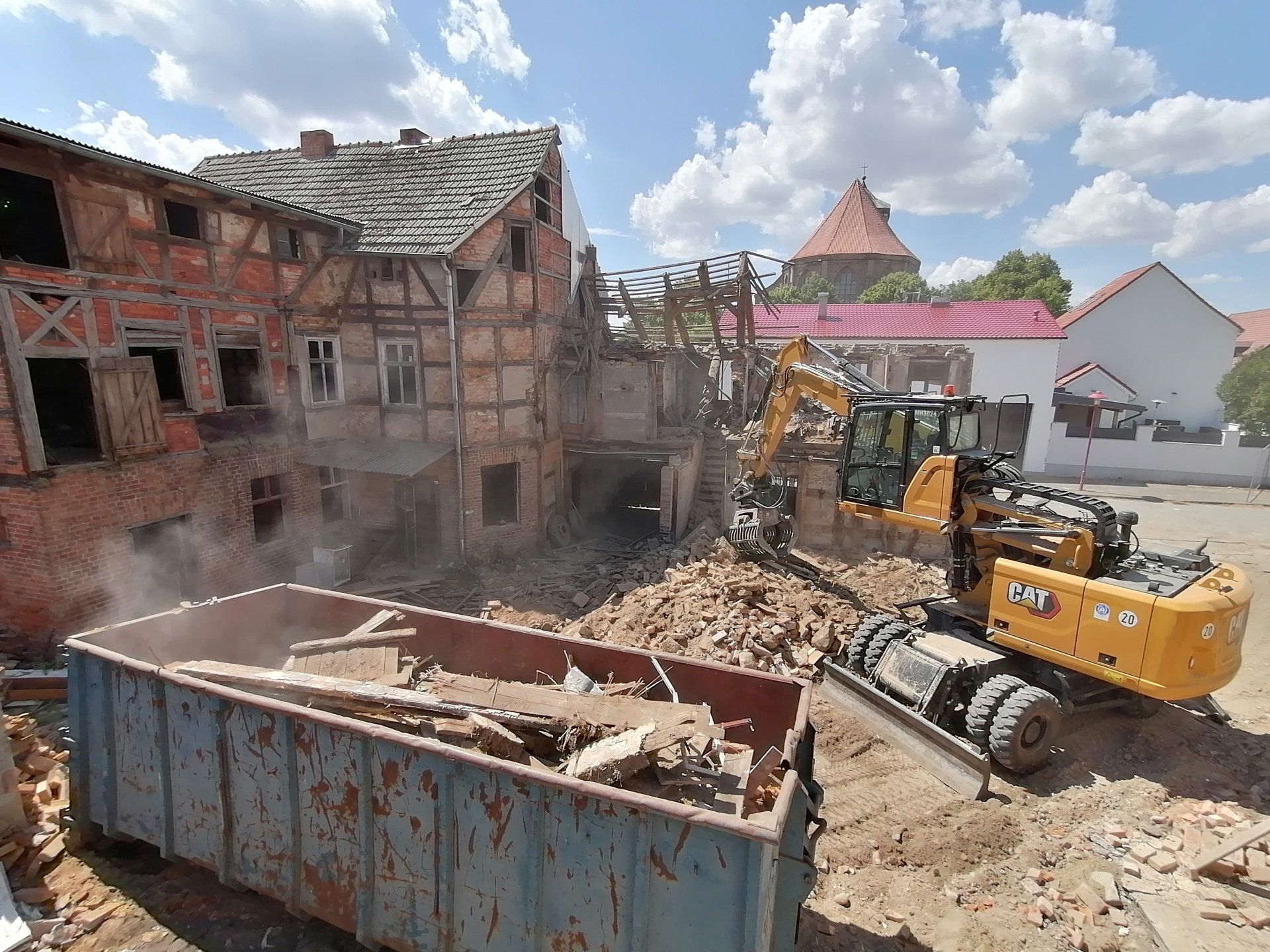 Der für 2022 geplante Abriss in der Schillstraße in Gartz (Oder) musste wegen angezeigter Einsturzgefahr schon im Sommer diesen Jahres ausgeführt werden. Um die Belästigung durch Staubentwicklung für die Anwohner so gering wie möglich zu halten, plante die Wohnungsbaugesellschaft mbH den Abriss eigentlich für das Frühjahr 2022. Durch eine Anzeige wegen Einsturzgefahr beim Landkreis Uckermark, hätte das Gebäude sehr kostenintensiv gesichert werden müssen. Aus diesem Grund wurde sofort abgerissen. Leider zum Nachteil der Nachbarn, die trotz sehr hoher Staubentwicklung, sehr viel Verständnis für die Arbeiten aufbrachten. Einige standen regelmäßig und schauten interessiert den Arbeiten zu. Sie meinten das sei spannender wie die Fußball-EM. Wir möchten uns hiermit nochmal für die entstanden Belästigungen entschuldigen und für das entgegengebrachte Verständnis aller Nachbarn und Anwohner bedanken.